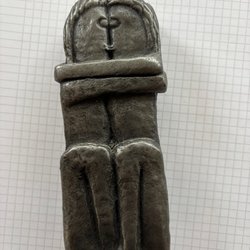 Miniatyr, liten dekorativ tallrik eller bricka av metall. Den har en detaljerad relief med figurer i mitten, omgivna av en kant med frukter och blommor.