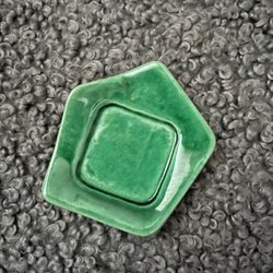 Keramikfat med dekorativ design. Märkt undertill med en symbol.