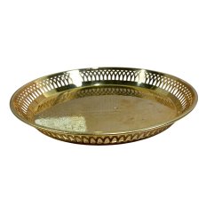 Scandia Guld bricka. Brickan är oval och har ett mönster i botten. Den är märkt "belagt med 24 karat guld" och "MADE IN KARLSHAMN, SWEDEN".