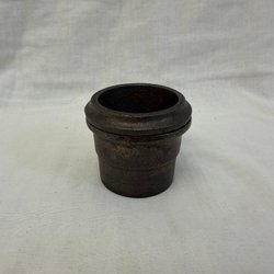 En rund träskål med en diameter på 43 cm och en höjd på 10 cm. Har använts för att förvara stearinljus därav stearinrester. Sprickor ger den karaktär tycker jag.