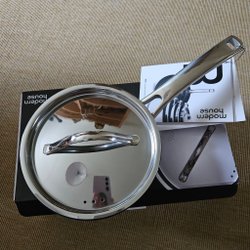Ett lock för kastrull med glas och svart handtag.