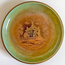 Fat av teak, diameter 13 centimeter och höjd 1,5 centimeter