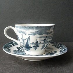 äldre ljusstake/ljushållare blå glaserad liten fågel/duva Gabriel Keramik