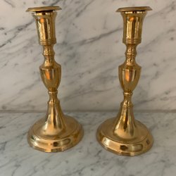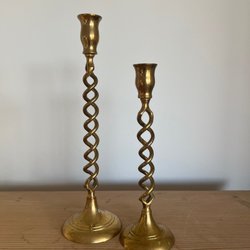 Sælger disse smukke, antikke lysestager i messing, der har tilhørt min mormor (født i 1929).