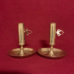 Ett par äldre ljusstakar i mässing.