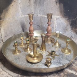 Antik ljusplåt i mässing / G.A. Adolfson Mora / nattljusstake / ljusstake