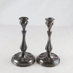 Paret ljusstakar, försilvrat koppar, (argent hache), slutet av 1700-talet. H: 30,5 cm. Samfraktas ej.