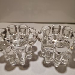 Ett par otroligt vackra retro ljusstakar i bärnstensfärgat glas. H4,5cm, D8,5cm. I mycket gott skick.