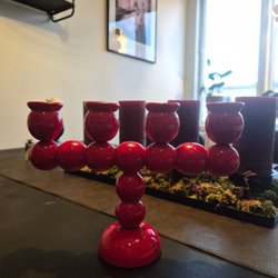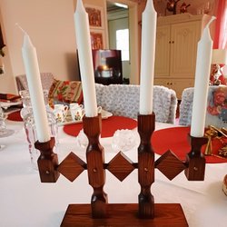 En ljusstake i trä för väggmontering. Passar för 4 ljus.