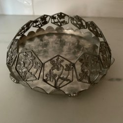 Rosa Ljung ljusstake med lila blommor 11,5 cm signerad