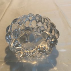 Klart glas. 10 cm hög, diameter 8 cm.