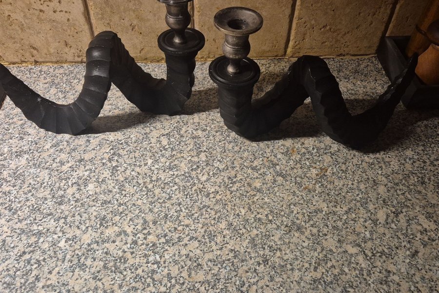 Paret ljusstakar. Naturligt slitage men hela och fina.höjd ca 20 cm längd ca 25 cm.