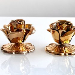 3 st vackra ljusstakar med guldförgyld stomme och fina pärlhängen i kristall.