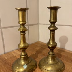 Två ljusstakar i mässing