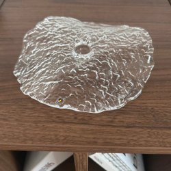 Ljusstake i glas med plats för tre ljus. Tillverkad av glas med en texturerad yta. Designen inkluderar hjärtformade detaljer.