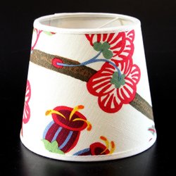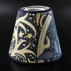 Lampskärm tillverkad i anrik svensk fabrik. Mycket fin kvalitet. Tyget Compton är ritat av William Morris, tillverkat hos Sanderson - högsta kvalitet på tillverkningen. Höjd 16,5 cm. Övre diameter 14,5 cm. Nedre diameter 20 cm. Klofäste. Se övriga auktioner. Vi samfraktar så förmånligt som möjligt.