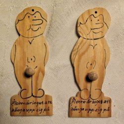 6 olikfärgade gubbar " hand in hand", 9,5,x 10,5 cm. Kan också sättas ihop till ett grytunderlägg.