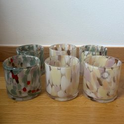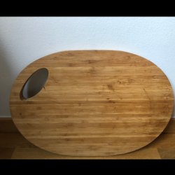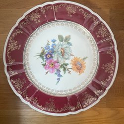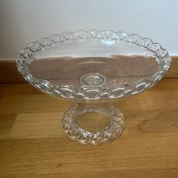 En eldfast form från Laholm, tillverkad i Sverige. Brickan har ett mönster i blå och lila nyanser. Se defekt blir två.