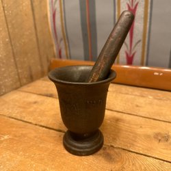 En stor sten mortel , 14,2 cm hög och 18 cm i diameter och stöten är 19 cm lång i fint skick