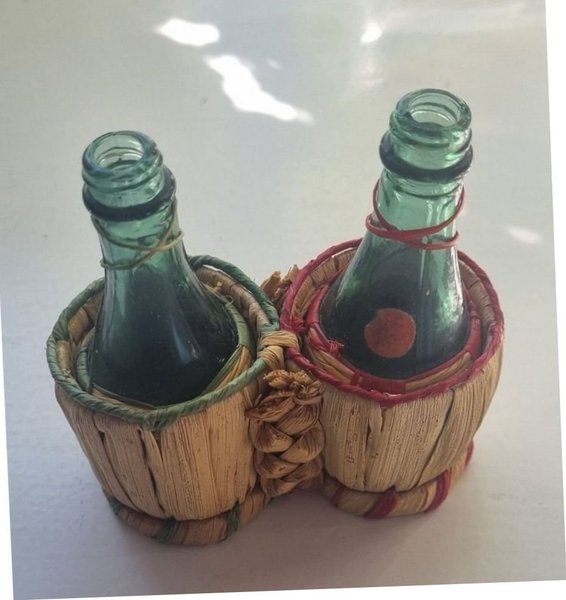 Dekorativa flaskor i korg