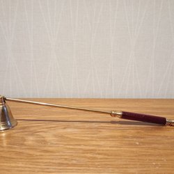 1 st. ljussläckare i mässing, trähandtag, längd 38 cm, titta noga på bilderna innan bud
