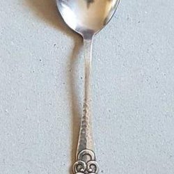 Saltsked i nyslver/ Alpacca. Längd c:a 6,2 cm