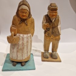 Två trä mannekäng dockor för konstnärliga ändamål eller dekoration.
