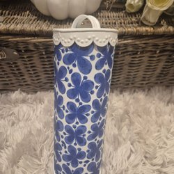 Vit bricka med plommon motiv, prunus från gustavsberg. Mönstret är handgjort av mig med tekniken decoupage vilket gör ytan avtorkningsbar
