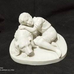 Porslinsfigur Parian - Pojke och Flicka med korg