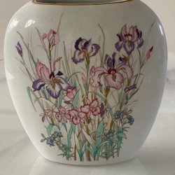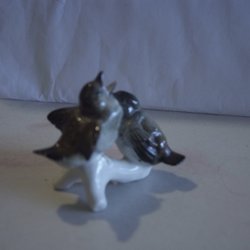 Figurinen föreställer ett par fåglar, i en omfamnande pose. Den är tillverkad av porslin med en glansig, iriserande yta