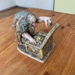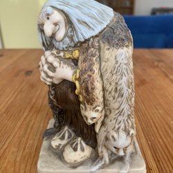 Trollfigur från ”I Trollens Värld” av Nils Holgersson Gården AB, inspirerad av John Bauer. Figuren föreställer ett trollpar. Den är märkt undertill med ”I Trollens Värld”, ”Nils Holgersson Gården AB” och ”fritt efter John Bauer”. Höjd: 32 cm, bredd: 28cm, djup: 20cm.