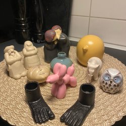 Keramikfiguriner är som små konstverk - omsorgsfullt formade och målade för att förmedla känslor och berätta en historia. Dessa charmiga skapelser kan vara allt från söta djurfigurer till eleganta mänskliga porträtt. Med sina färgglada mönster och levande detaljer tillför de en lekfull och unik touch till ditt hem.