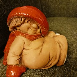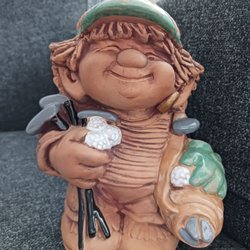 Ett troll,trollgubbe som klätt sig fin i vacker väst, kanske kalas på G, har signatur som jag tyvärr inte kan tyda,ca 12 cm hög