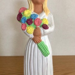 En charmig figurin föreställande en gammal kvinna. Perfekt som dekoration eller samlarobjekt.signerad . Lite färgborttagall på några ställen .