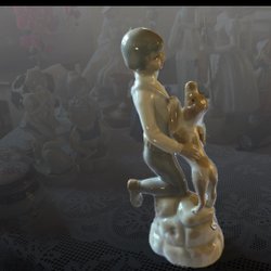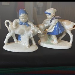 Ett par porslinsfigurer föreställande en man och en kvinna. Mannen bär en huva och håller en pipa. Kvinnan bär en huvudduk och en förklädesklänning.