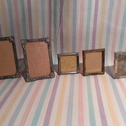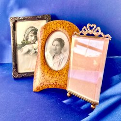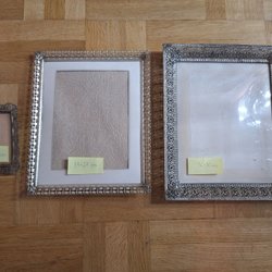 Två fotoramar. En ram är gjord av Eastman Kodak Co. Rochester, N.Y. för 4 x 5 plåtar. Den andra ramen har en bild.