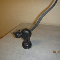 En dekorativ skulptur i form av ett katthuvud. Den har en mörk färg med detaljer i guld och stora, iögonfallande ögon. Gjord i harts. Stl 73mm hög, 67mm i diameter, vikt 104gr. Packas väl i frigolit. Titta gärna på mina andra auktioner.