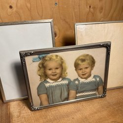Den lilla ramen har välvt glas men saknar stödet på baksidan.