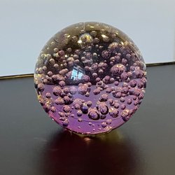 Brevpress i glas med färgglada detaljer.
