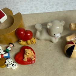 Ett set med diverse prydnadsföremål. Inkluderar två sparbössor i form av björnar, en silverfärgad ask med motiv och ett helt nytt fotoalbum.