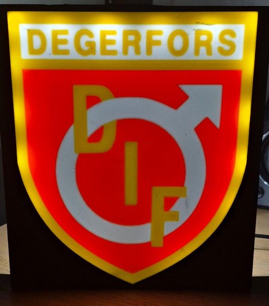 Lamporna är ca 20 x 20 cm och lyser upp klubbens logga i ett stilrent LED-ljus.