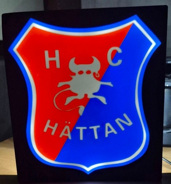Lamporna är ca 20 x 20 cm och lyser upp klubbens logga i ett stilrent LED-ljus.