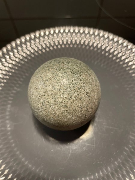 Halvtrumlad grågrön sten