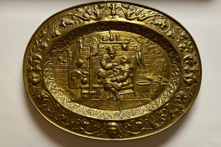 Antik väggbricka i mässing
