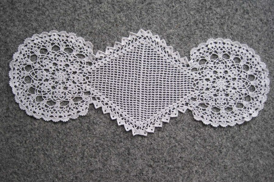 Virkad av ganska tunt bomullsgarnCa 24 x 59 cm
