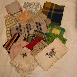 2 st dukar linnedukar RETROTEXTIL RETRO VINTAGE . I fint begagnad skick, några små knappt synliga fläckar finns, se bilder, annars I fint begagnad skick.