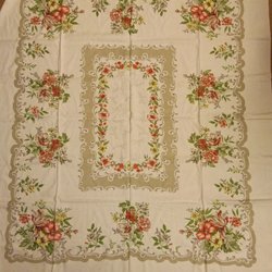 Duk broderad med blommor, Retro, grön