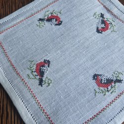 Vacker vintage handbroderad duk med spetskant blommotiv RETRO