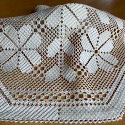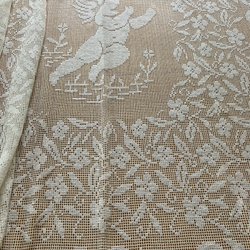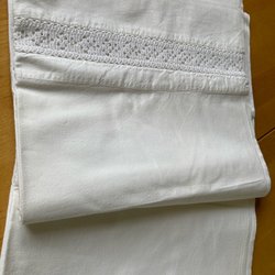 LINNEDUK VINTAGE HANDBRODERAD VITBRODERI SPETS VACKER!