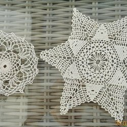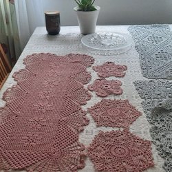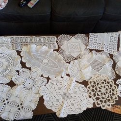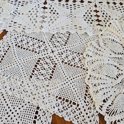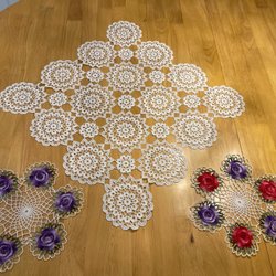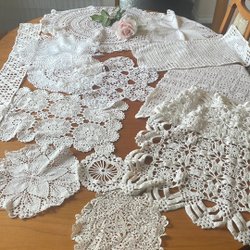 Ett sortiment av virkade dukar i olika storlekar och mönster. Perfekt för att dekorera ditt hem.